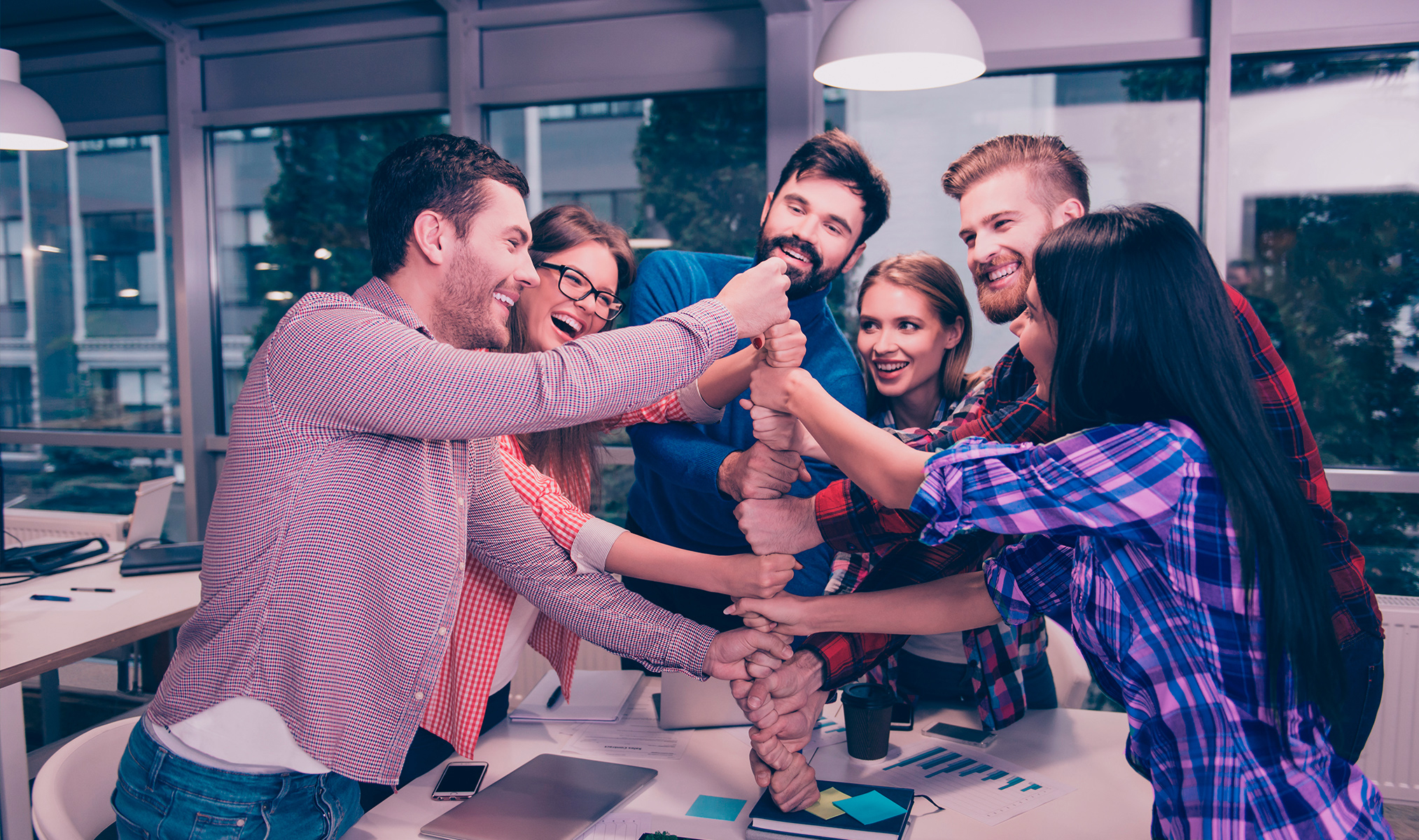 United in spirit and purpose, team locks hands in a jubilant testament to the power of group incentives that weave individual strengths into a tapestry of collaborative success.