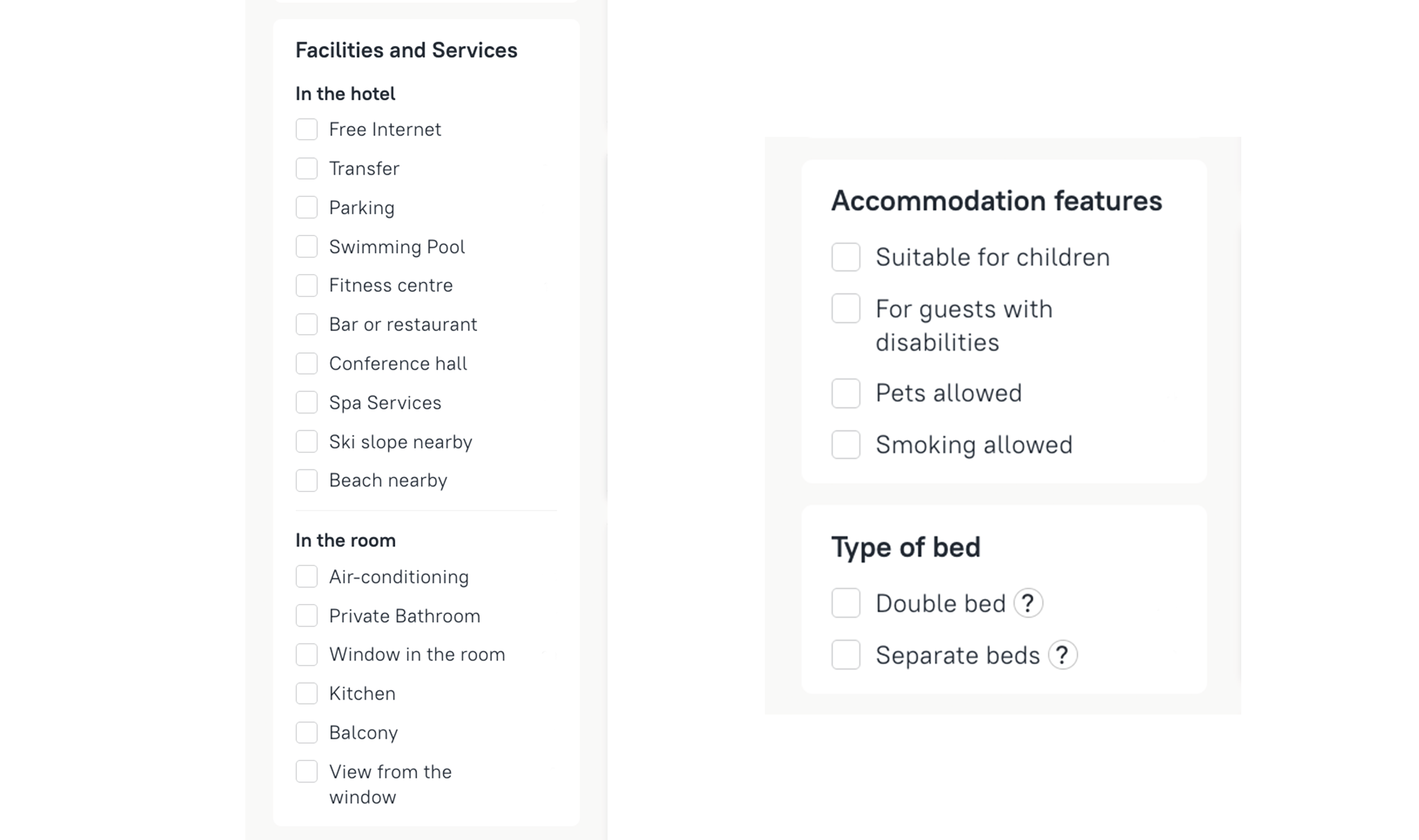This filter allows you to select in what type of accommodation you want to stay: options include hotels, apartments and villas.