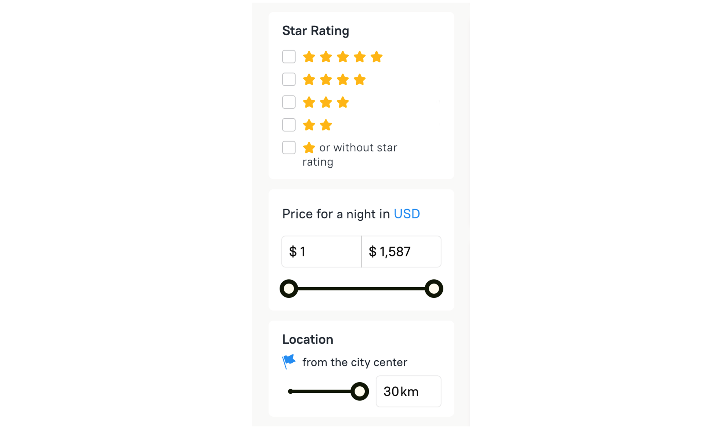 Star rating, price for a night and location