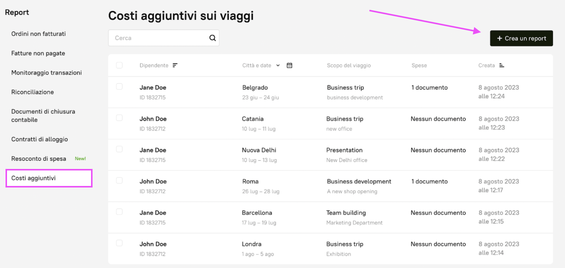 1. Vai alla sezione “Report”, quindi fai clic su “Costi aggiuntivi”.