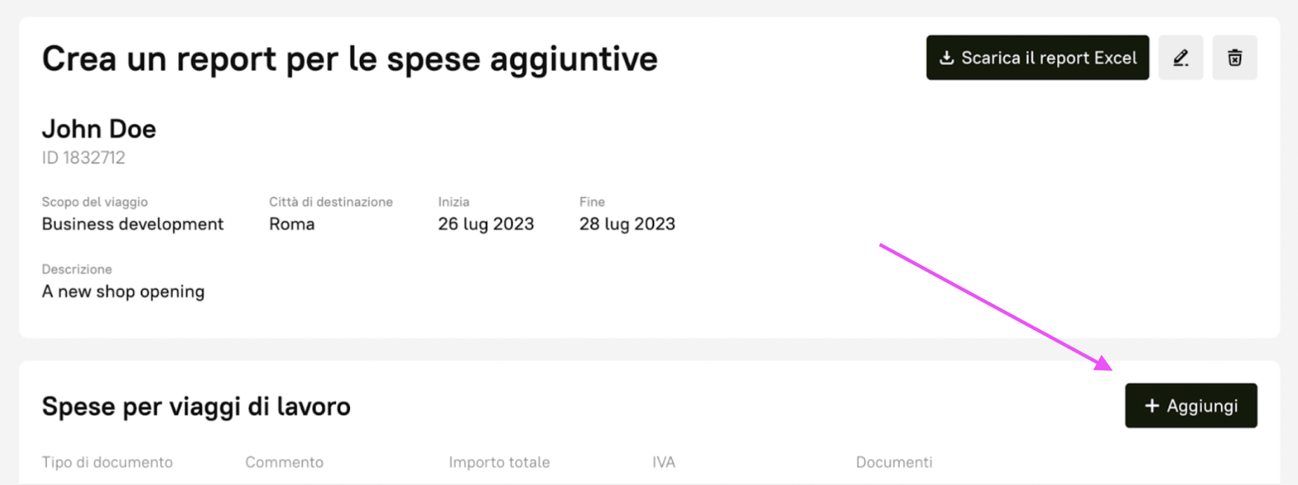 4. Entra nella sezione “Spese per viaggi di lavoro” e fai clic su “Aggiungi”.