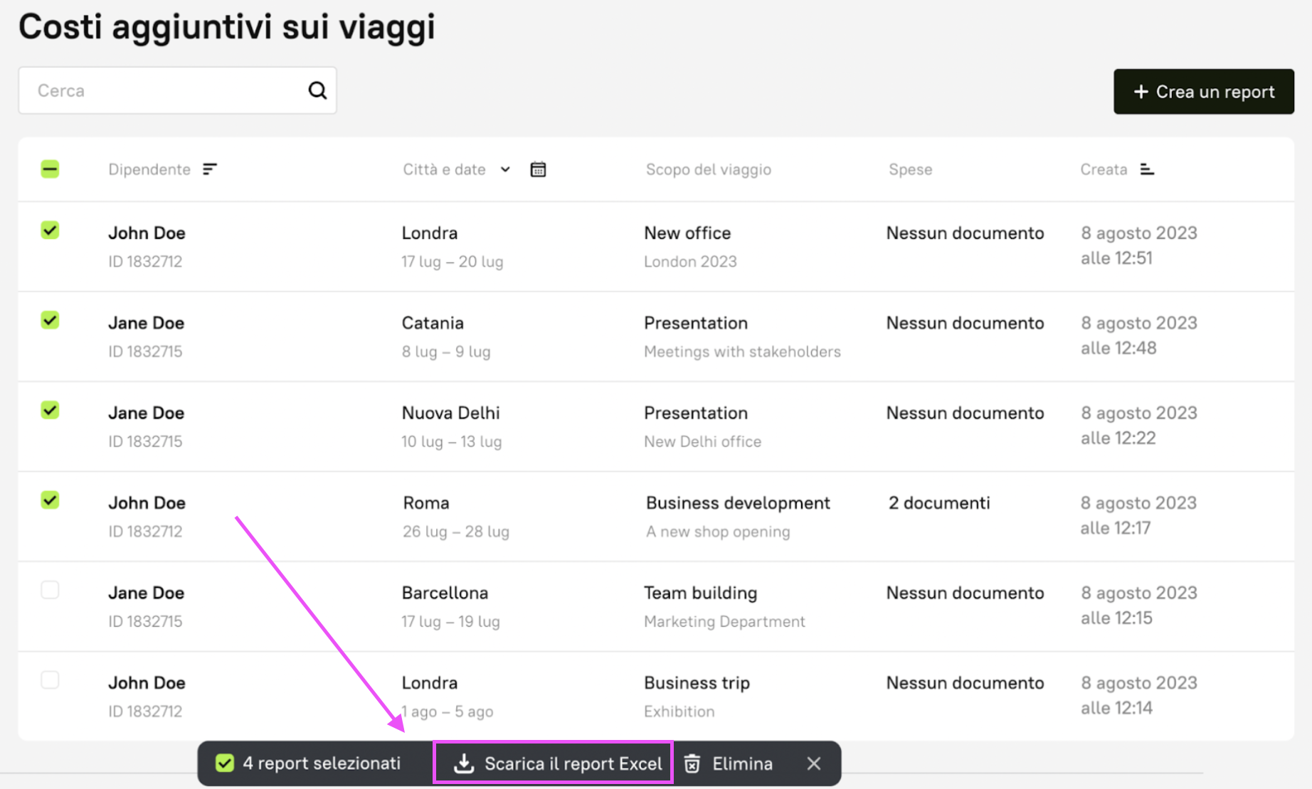 Fatto! Le note delle spese supplementari possono essere scaricate in formato Excel o modificate facendo clic sull’icona della matita.