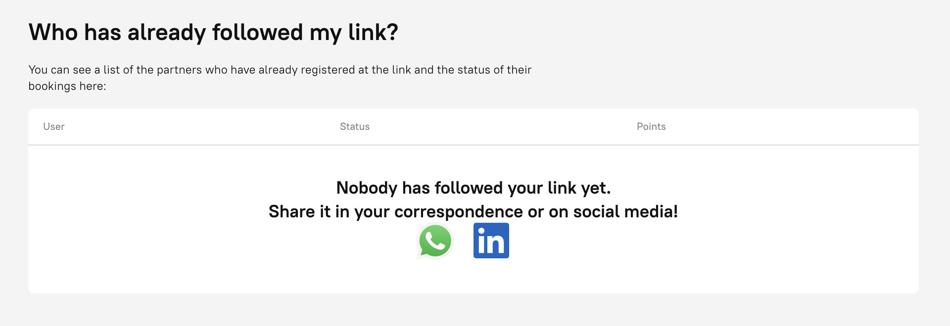 In the Referral program section, you can check at any time who among your referrals has already signed up using your referral link and see their booking status.