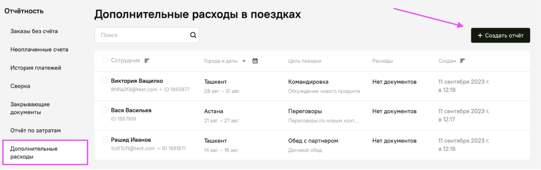 1. Перейдите в раздел «Отчётность», вкладку «Дополнительные расходы».