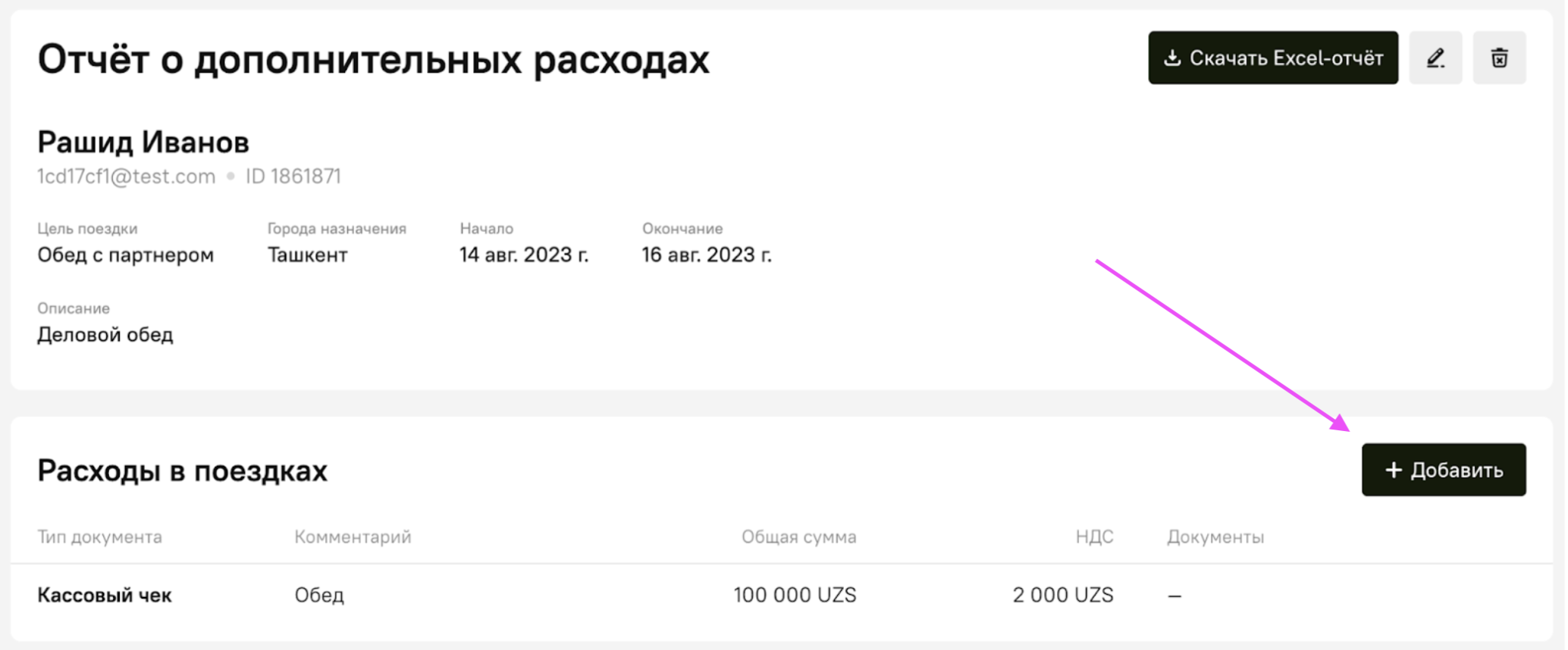 4. Найдите блок «Расходы в поездке» и нажмите «Добавить».