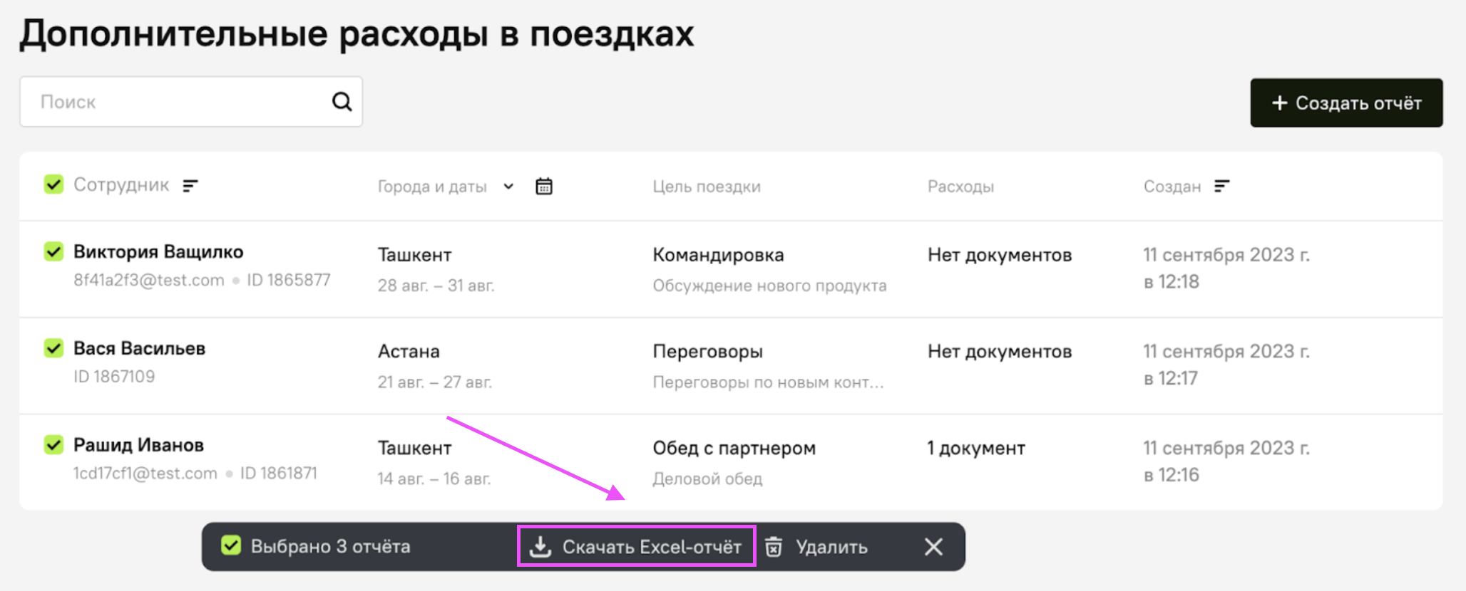 Готово! Отчёт(ы) о дополнительных расходах можно скачать в формате Excel или отредактировать, нажав на значок карандаша.