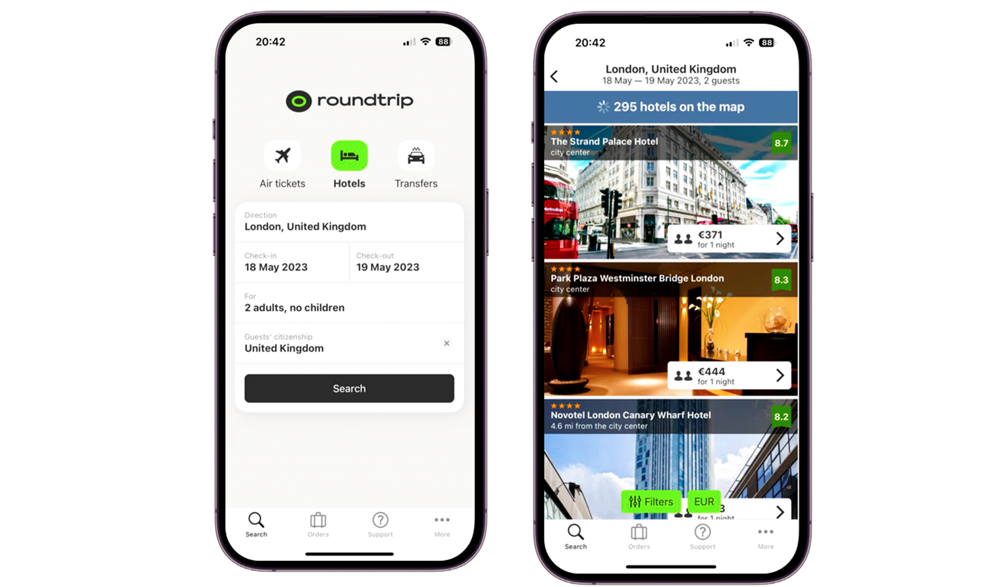 Business travel may be stressful, but having the correct tools can make a big difference. That is why we created Roundtrip, a smartphone app particularly tailored for business travelers. With Roundtrip, you can book hotels, flights, and transfers from wherever you are, and you may contact customer service at any time, from anywhere.