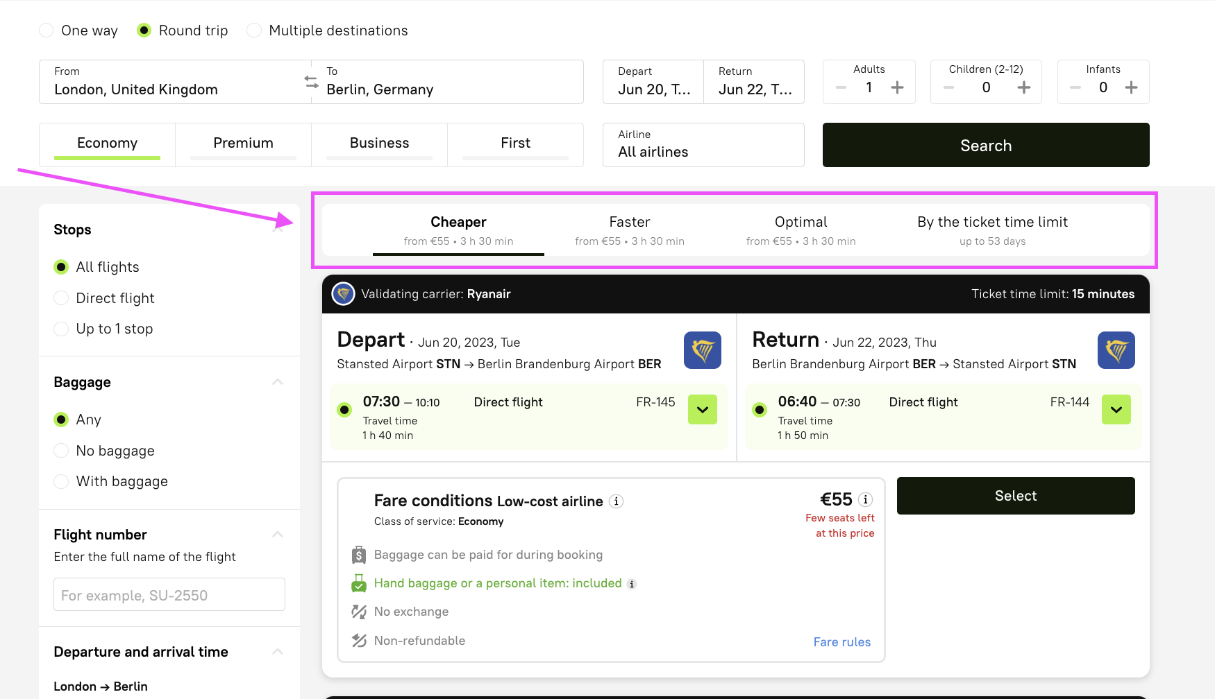 Compare costs and locate the best bargains using filters on Roundtrip.