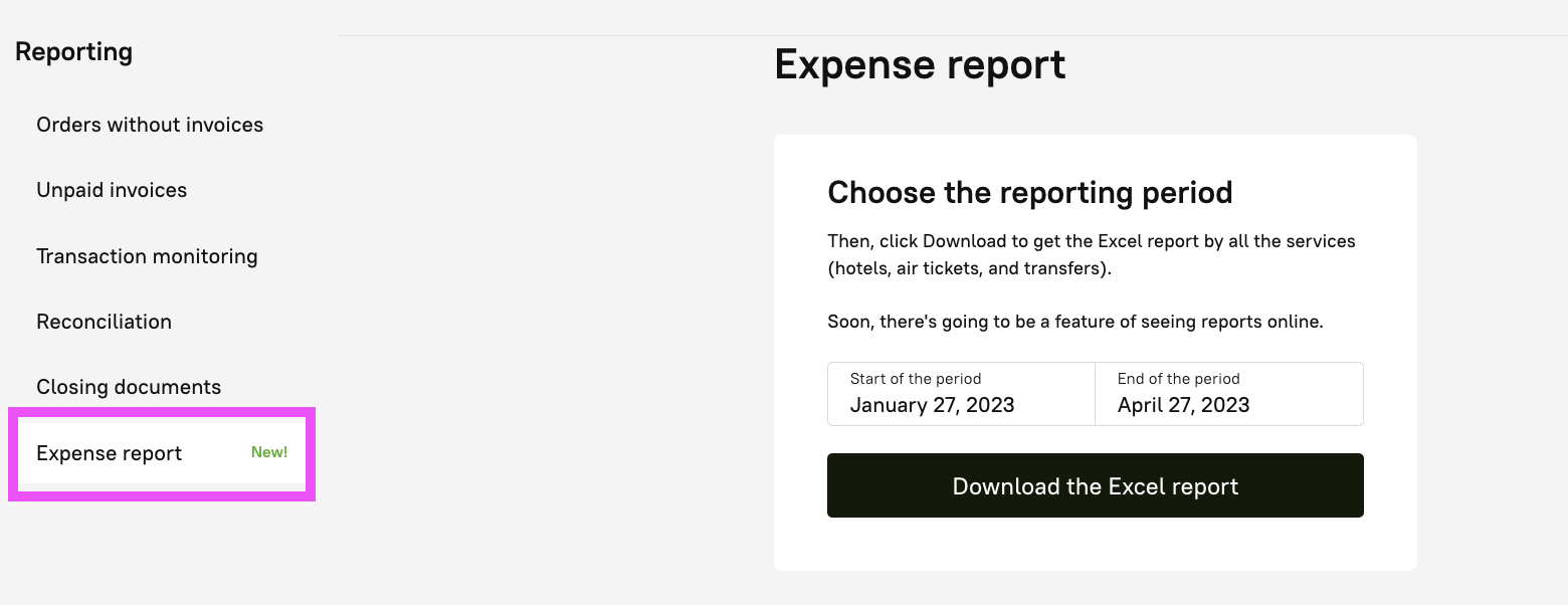 Another approach to save money on business travel is to use our unique expense report feature.